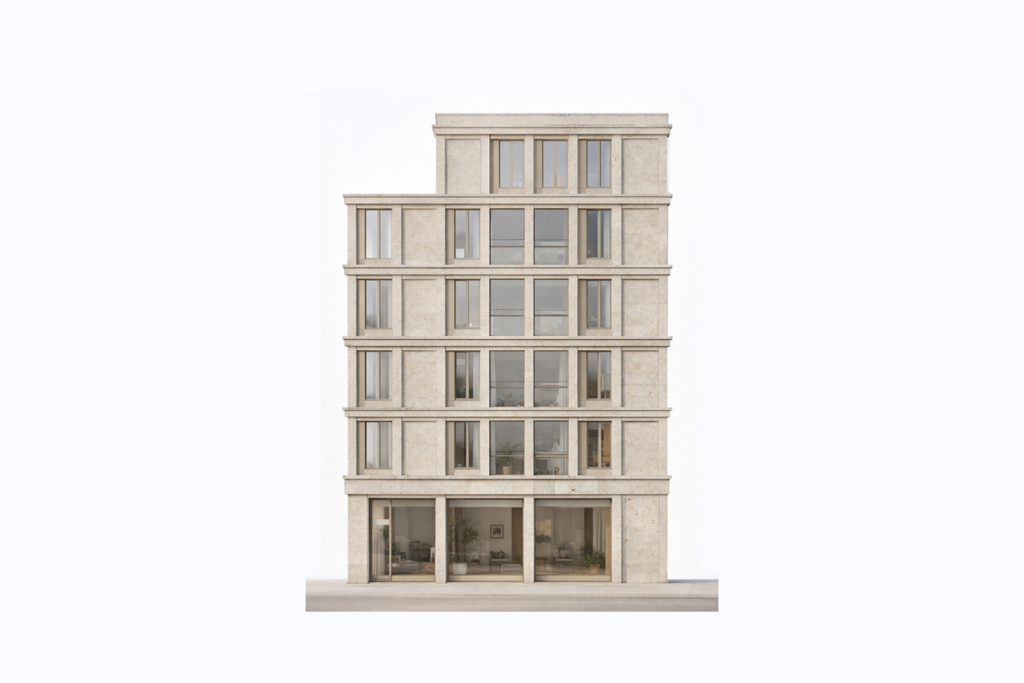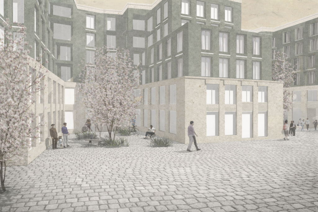 The design proposed three building volumes: one facing the street and two additional rear buildings within the interior of the block. Two of the buildings were dedicated exclusively to residential use, while a third structure in the courtyard was planned for commercial purposes.